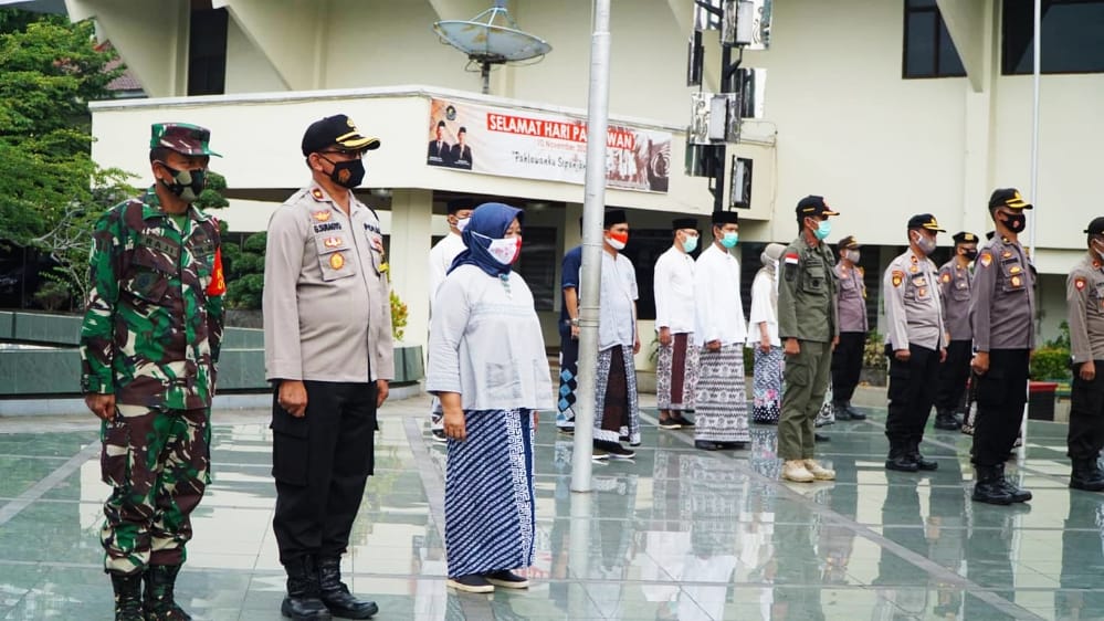 Habib Luthfi bin Yahya pimpin Apel Siaga Disiplin Protokol Kesehatan di Polres Pekalongan didampingi oleh Walikota, Kapolres dan Komandan Kodim 0710 Pekalongan Letkol CZI Hamonangan Toruan, Sabtu (5/12/2020).