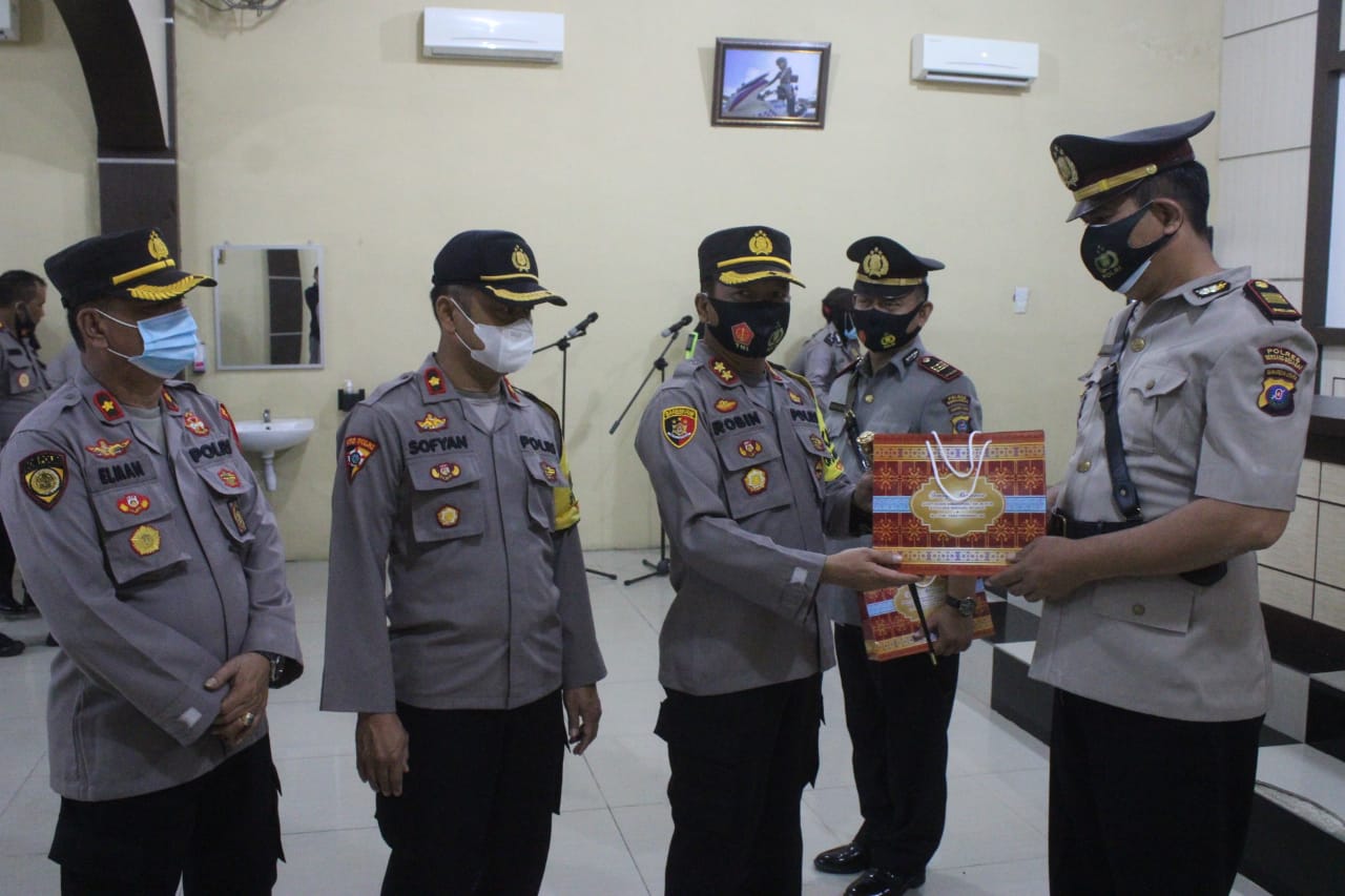 Upacara Sertijab dilaksanakan di Aula Patriatama, Rabu (29/12/2020) pagi dengan dihadiri PJU, Kasatfung, Perwira, Bintara dan Kapolsek yang dilantik.