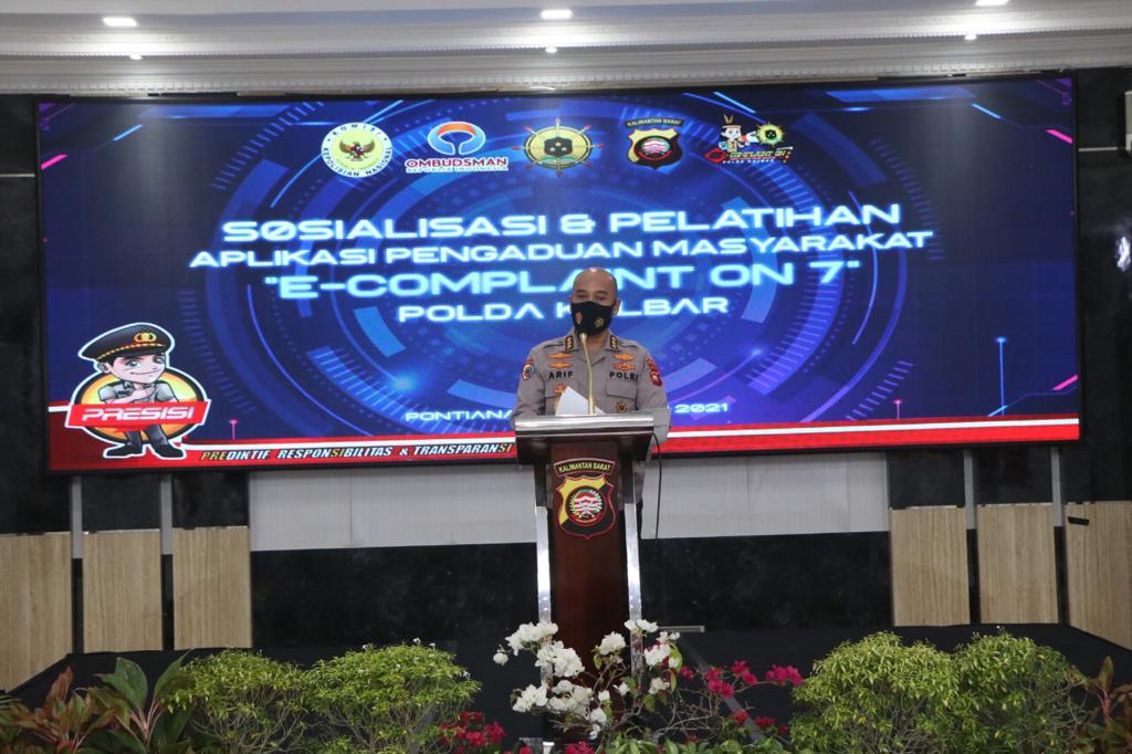 "Kepala Kepolisian Daerah Kalbar, Irjen Pol Dr. R. Sigid Tri Hardjanto, SH, M.Si menjelaskan bahwa pelayanan melalui E-Complaint On 7 ini menjamin kecepatan respon yang akan ditindaklanjuti dalam waktu 7 hari pengaduan sudah mendapatkan respon dari Polda Kalbar.