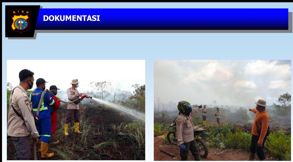 ,"Personil Polda Riau yang sudah siap sedia setiap saat di semua Bhabinkamtibmas di wilayah Polsek masing-masing langsung kita perintahkan untuk bergerak dengan membawa peralatan susuai titik koordinat yang yang kita terima dari aplikasi dashboard lancang kuning, sehingga semua potensi kebakaran dan titik api dapat dengan sangat cepat kita padamkan," Kata Kapolda Riau, Irjen Pol Agung Setya Imam Effendi.