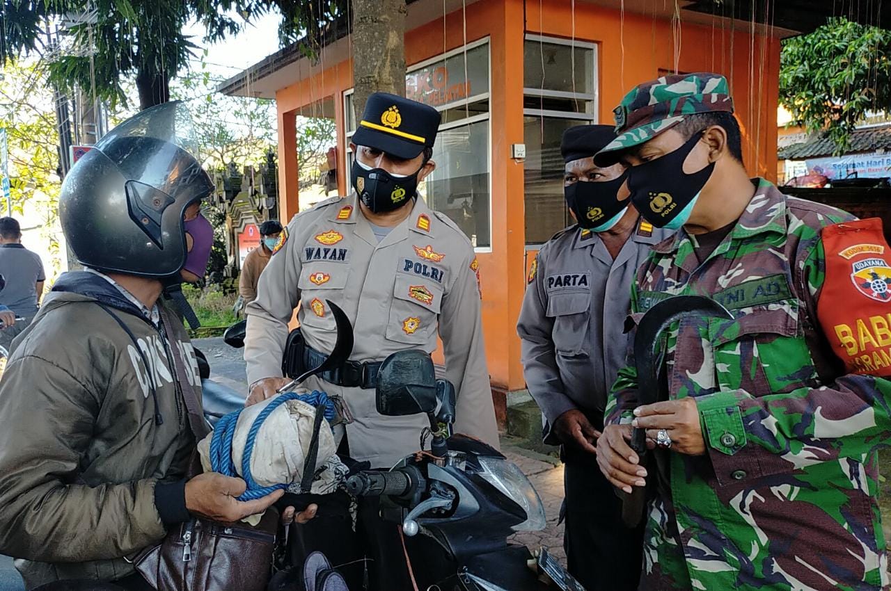 Bertempat di simpang Catuspatha Desa Peliatan Ubud dan Simpang Catuspatha Kel.Ubud personil polsek Ubud bersama anggota Koramil 02 Ubud melaksanakan kegiatan razia gabungan.