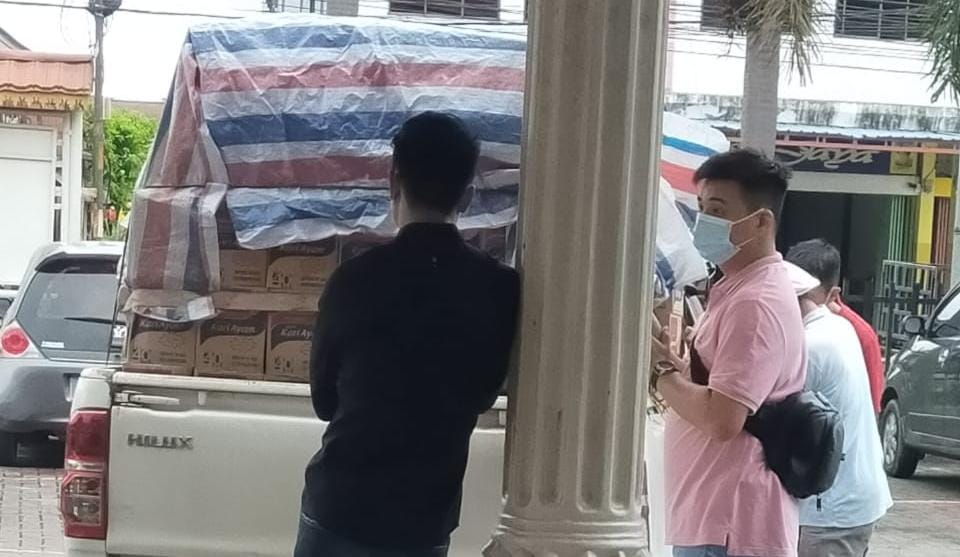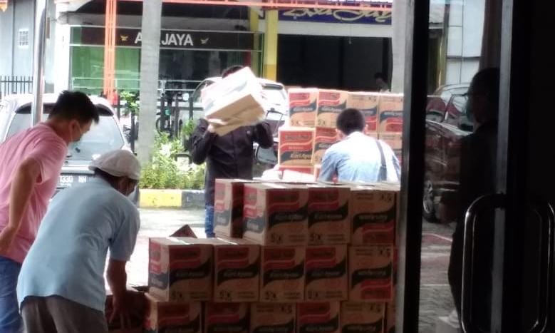 Foto : Sembako yang diberikan pengusaha pekanbaru sedang menunggu bongkar di depan kantor Dinas Tenaga Kerja Provinsi Riau,diduga sebagai Gratifikasi