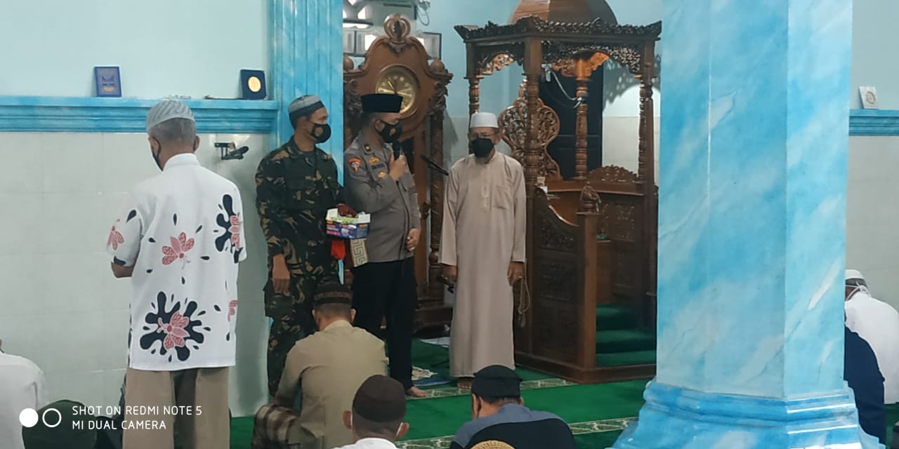 Selain Shalat Jumat dalam kegiatan tersebut juga dilaksanakan sosialisasi pencegahan penyebaran Covid-19 dan pembagian masker kepada Jamaah Masjid dan masyarakat.