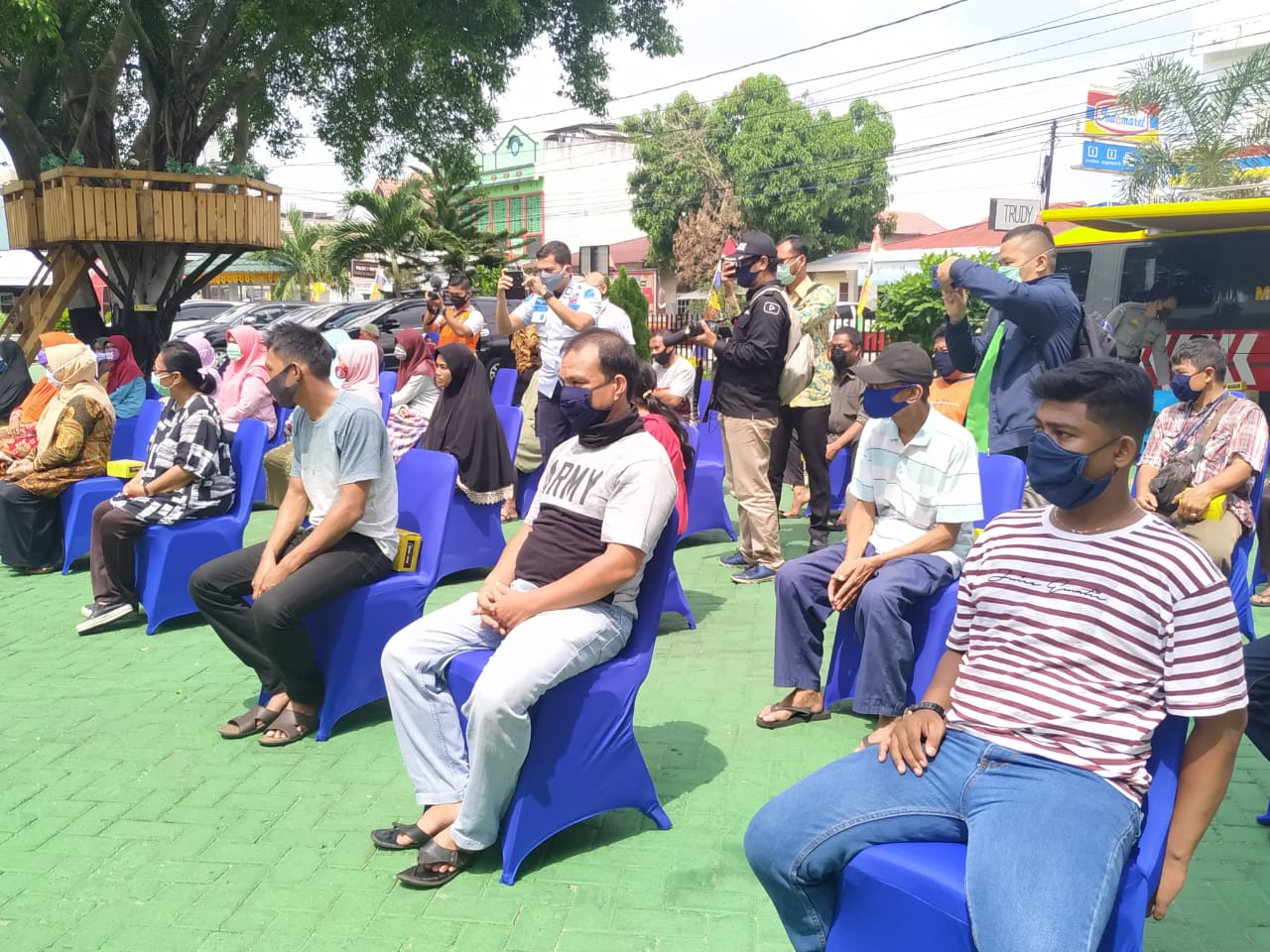 Pembagian sembako kali ini dilakukan untuk 30 orang warga masyarakat terdampak Covid - 19, terdiri dari masyarakat lokal, dan sejumlah Napi asimilasi yang sangat membutuhkan bantuan. Sementara itu, pembagian topeng dibagi dua buah langsung dibagikan oleh Kepala Kantor Wilayah Riau, Lucky Agung bersama Kepala Divisi Lembaga Pemasyarakatan (Kadiv Pas) dan pejabat lainya di Jalan Kavling Kec. Berlayar Gobah.