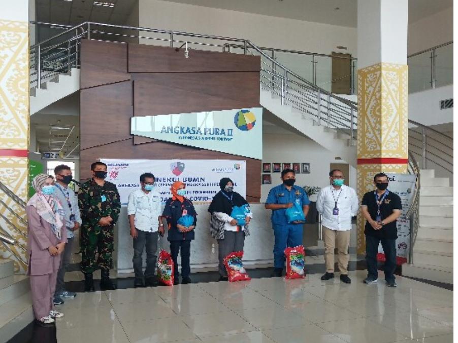 Pembagian sembako, juga dilakukan secara simbolis di gedung kantor PT Angkasa Pura II kepada sejumlah karyawan dan masyarakat. Berharap, dengan bantuan peduli dampak Covid-19 ini, dapat meringankan beban ekonomi saat PSBB.