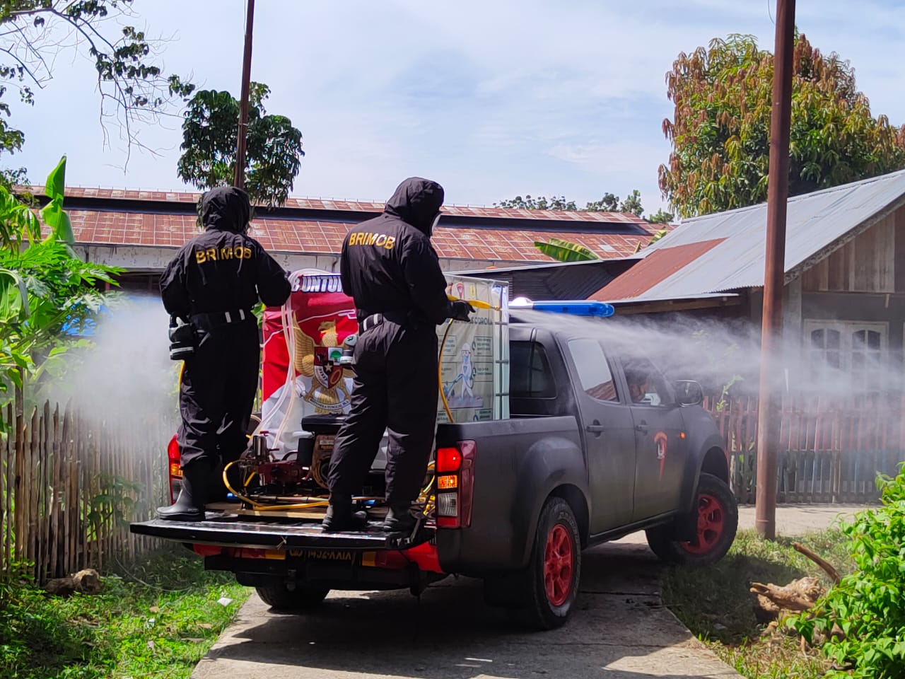 Tim KBR Ilato Brimob Polda Gorontalo yang selalu dan terus melakukan penyemprotan Desinfektan dalam mencegah dan putuskan mata rantai virus Covid19.