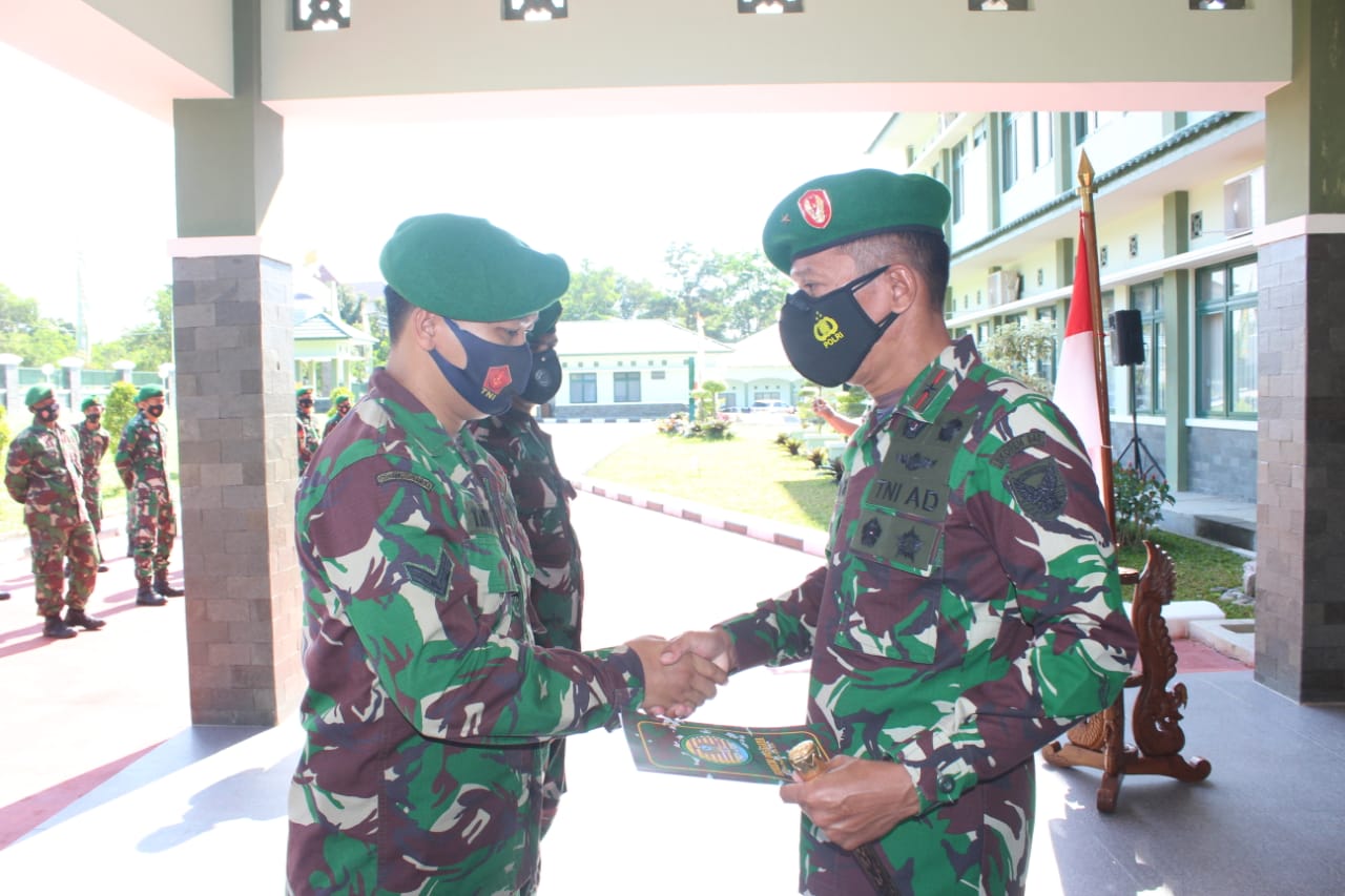 Acara tradisi pelepasan prajurit yang akan bertugas sebagai satgas penebalan teritorial di wilayah Kodam XVIII/Kasuari dilaksanakan Rabu 23/06/2021 di Makorem 045/Gaya Kel. Air Itam, Kec. Bukit Intan, Kota Pangkalpinang.