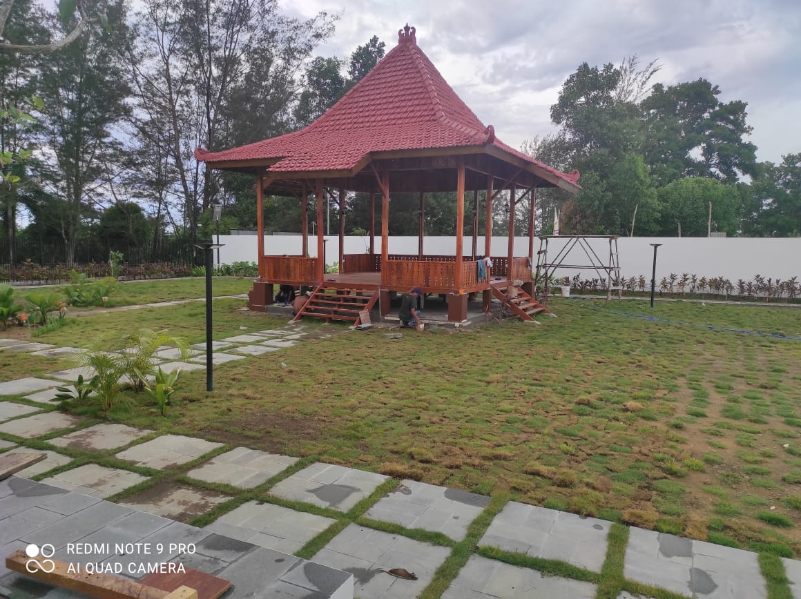 Pekerjaan struktur bangunan : pada pemasangan genteng kodok untuk atap bangunan pendopo, menggunakan genteng bekas yang rekondisi (dicat kembali), pemasangan kisi-kisi atau ornamen pada bangunan pendopo menggunakan kayu Jati dan pekerjaan kontruksi rangka atap menggunakan kayu Merbau namun yang terpasang jenis kayu kelas II.