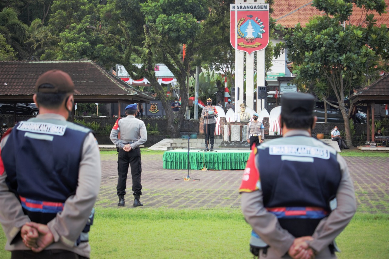 Polres Karangasem Gelar Apel Pasukan Kesiapan PPKM Darurat di Lapangan Tanah Aron