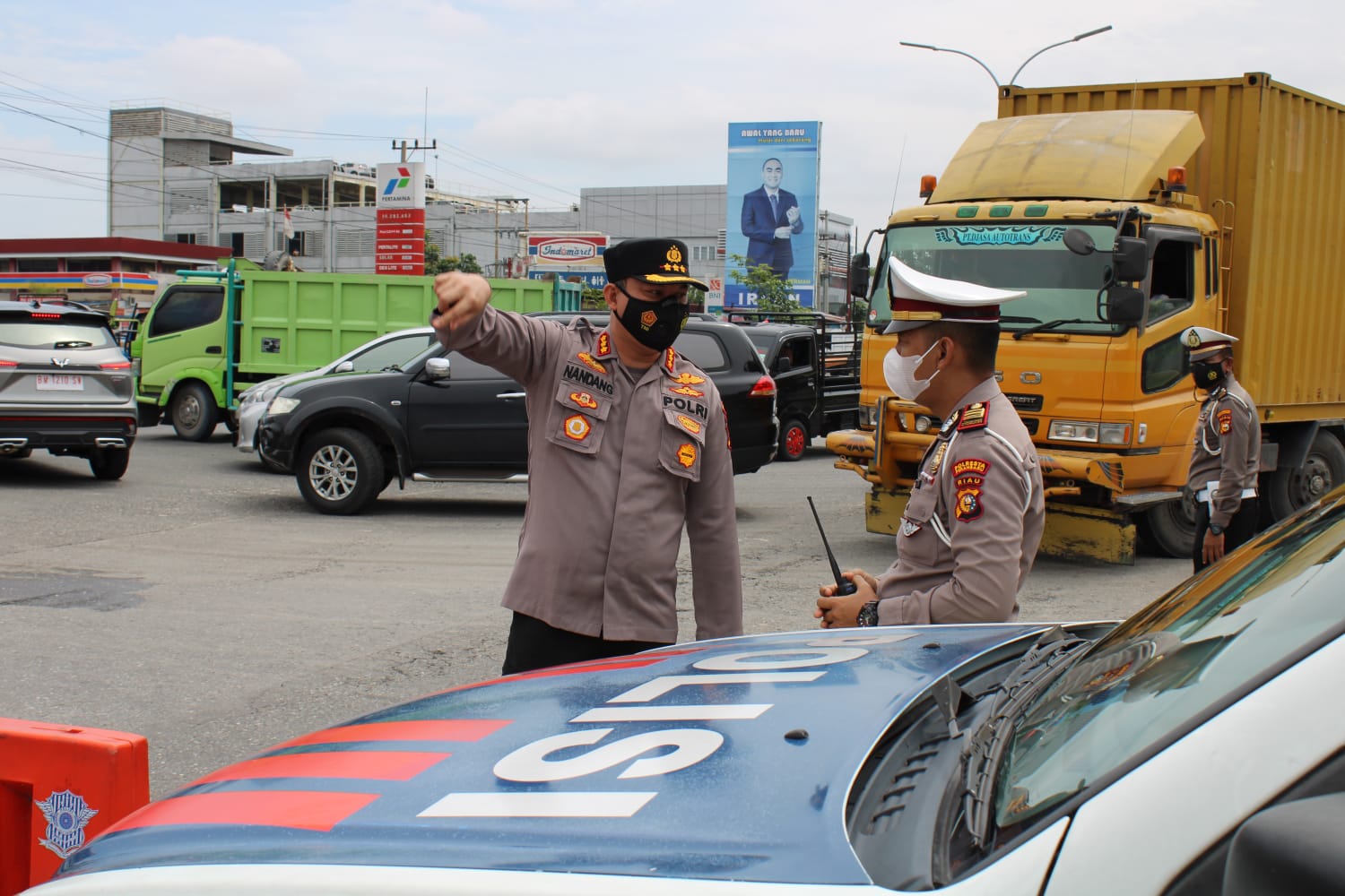 Kapolresta Pekanbaru Kombes Pol H. Nandang Mumin Wijaya, S.I.K.,M.H melakukan pengecekan Penyekatan jalan dalam rangka PPKM Mikro di kota Pekanbaru.
