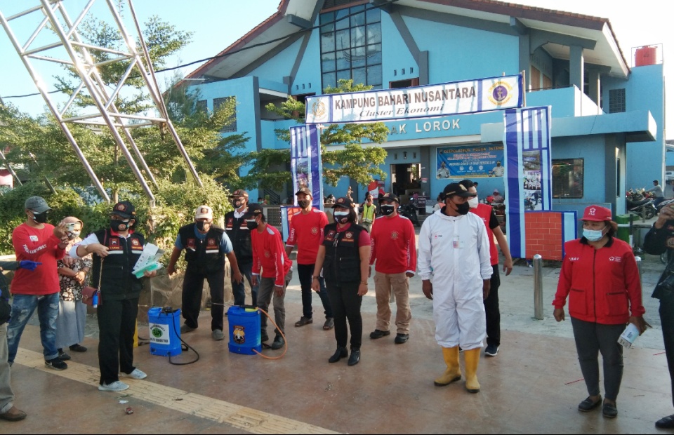 Maulud menambahkan hari ini kita melaksanakan tugas ini dengan niat ibadah kepada Allah mudah mudahan rekan semua ikhlas dalam melaksanakan tugas penyemprotan disinfektan serta pembagian masker pada masyarakat di wilayah Pasar Tambak Lorok ini," pungkasnya.