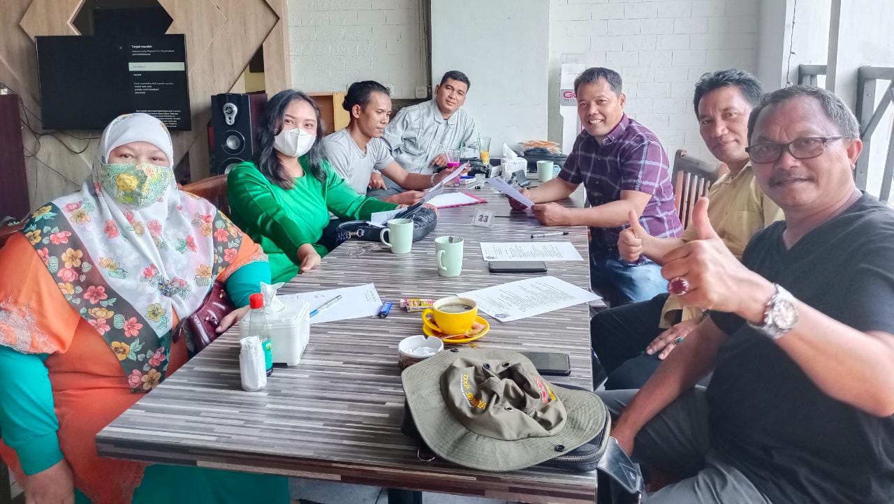 Foto: Ketua Aliansi Pers Pergerakan Tolak Pergubri Nomor 19 Tahun 2021, Feri Sibarani, didampingi senior Pers Riau, Ir Yosman Matondang saat berdialog dengan Sekda Provinsi Riau, SD Hariyanto dan Asisten II Gubernur Riau, Ginting, serta Kadis Kominfo Riau, Cairul Rizky di kantor gubernur Riau..