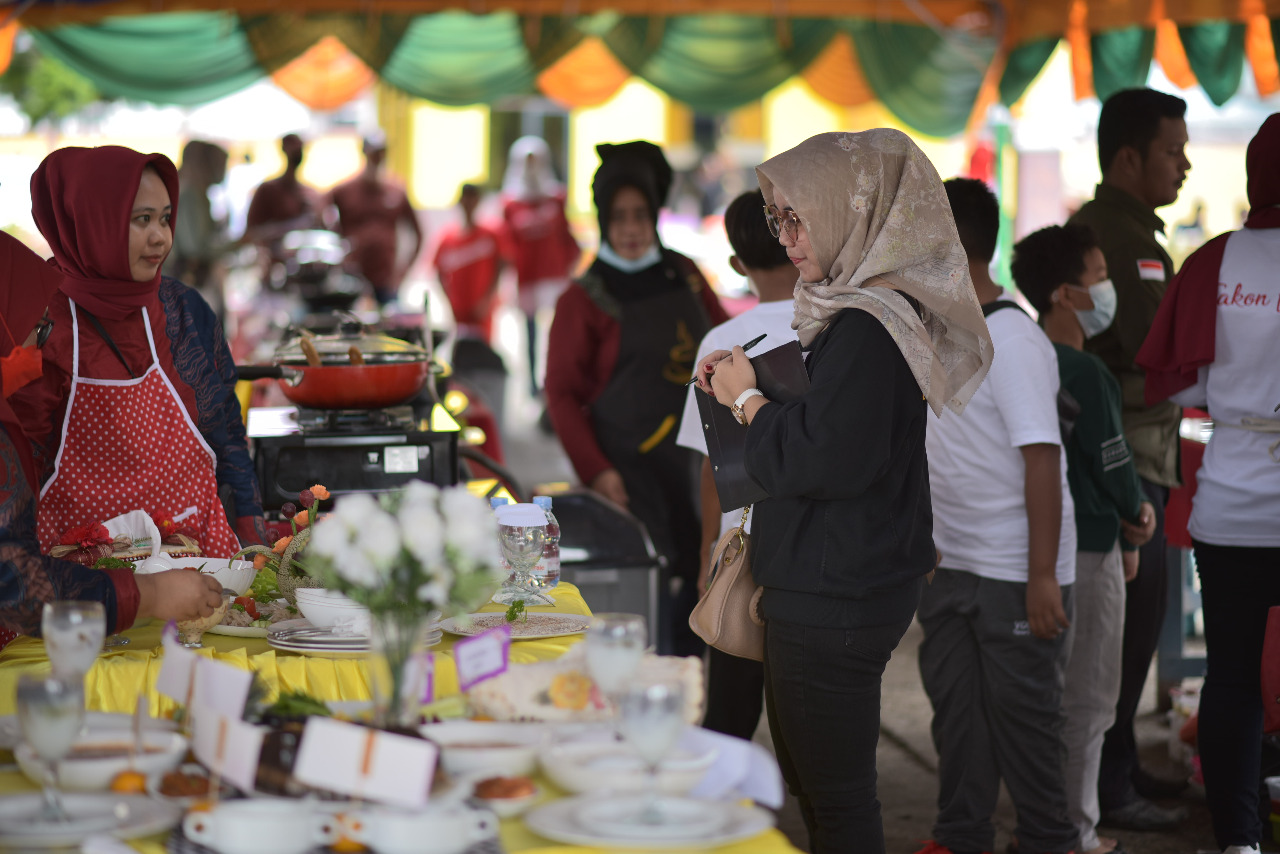 Kadis PUPR Ardiansyah bersama Ketua Dharma Wanita Persatuan unit PUPR Rita Susanti turut menjadi juri pada lomba masak berbahan olahan makana berbahan baku dari sagu.