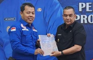 Foto: Ketua Umum Perkumpulan Pers Daerah Seluruh Indonesia (PPDI) bersama Wakil Gubernur Riau, Brigjen TNI (p) Edy Natar Nasution