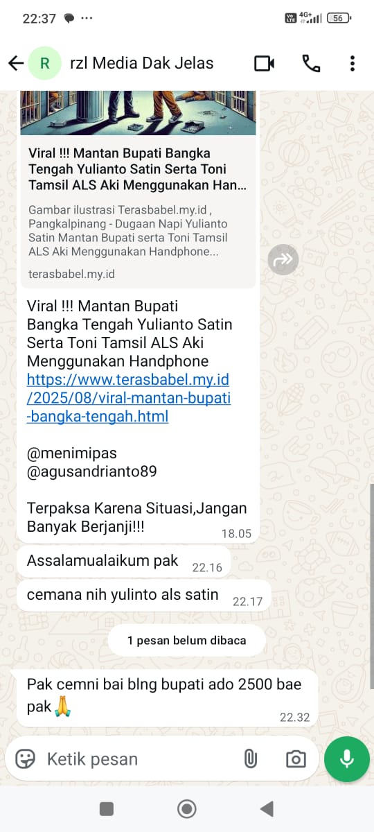 Tak berhenti di situ, Panjul bahkan menggunakan berbagai nomor WhatsApp untuk menciptakan kesan seolah ada wartawan lain dari jejaring media KBO Babel yang mendesak bahwa berita itu akan di-copas dan disebarluaskan jika tidak segera “diselesaikan”.