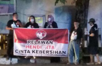 Meski malam itu hujan gerimis, tidak menyurutkan para relawan SERANG untuk terus mensosialisasikan kepada masyarakat agar hadir di TPS dan coblos Hendi-Ita.