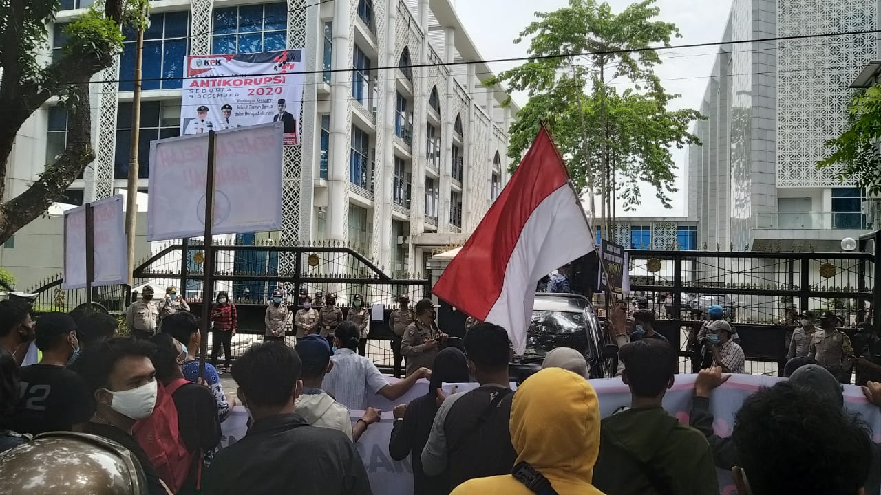 Penolakan ini disampaikan dalam bentuk aksi unjuk rasa di Kantor DPRD Sumut jalan Imam Bonjol dan titik nol kota Medan di depan kantor pos besar, Selasa siang (1/12/2020).