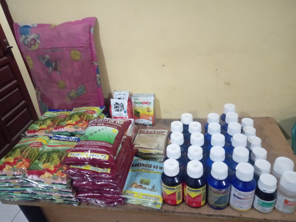 Selain itu Tim Bengkik juga mengamankan barang bukti, 2 botol Pestisida merk Raft, 6 botol Pestisida merk Masconil, 6 botol Pestisida merk Kojo, 3 bungkus Pestisida merk Nordik, 5 botol Pestisida merk Trobintop, 9 botol Pestisida merk Starle, 19 bungkus Pestisida merk SuperCals900 dan 1 bungkus Pestisida.