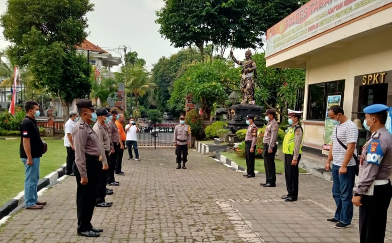 Dipasca pandemi Covid19 ini Kapolres Tabanan tidak bosan dan jemu mengingatkan anggota Polres Tabanan untuk tetap mentaati Protokol Kesehatan, jangan pernah gegabah atau meremehkan Corona Virus Disease, ingat Memakai Masker, Mencuci tangan dengan sabun di air mengalir, Menjaga jarak saat berinteraksi dengan orang lain, dan Menjauhi Kerumunan, Ucap Kapolres Tabanan.