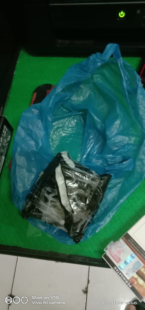 Saat penggeledahan, petugas menemukan bungkusan plastik ukuran besar berisi sabu-sabu seberat 100 Gram.