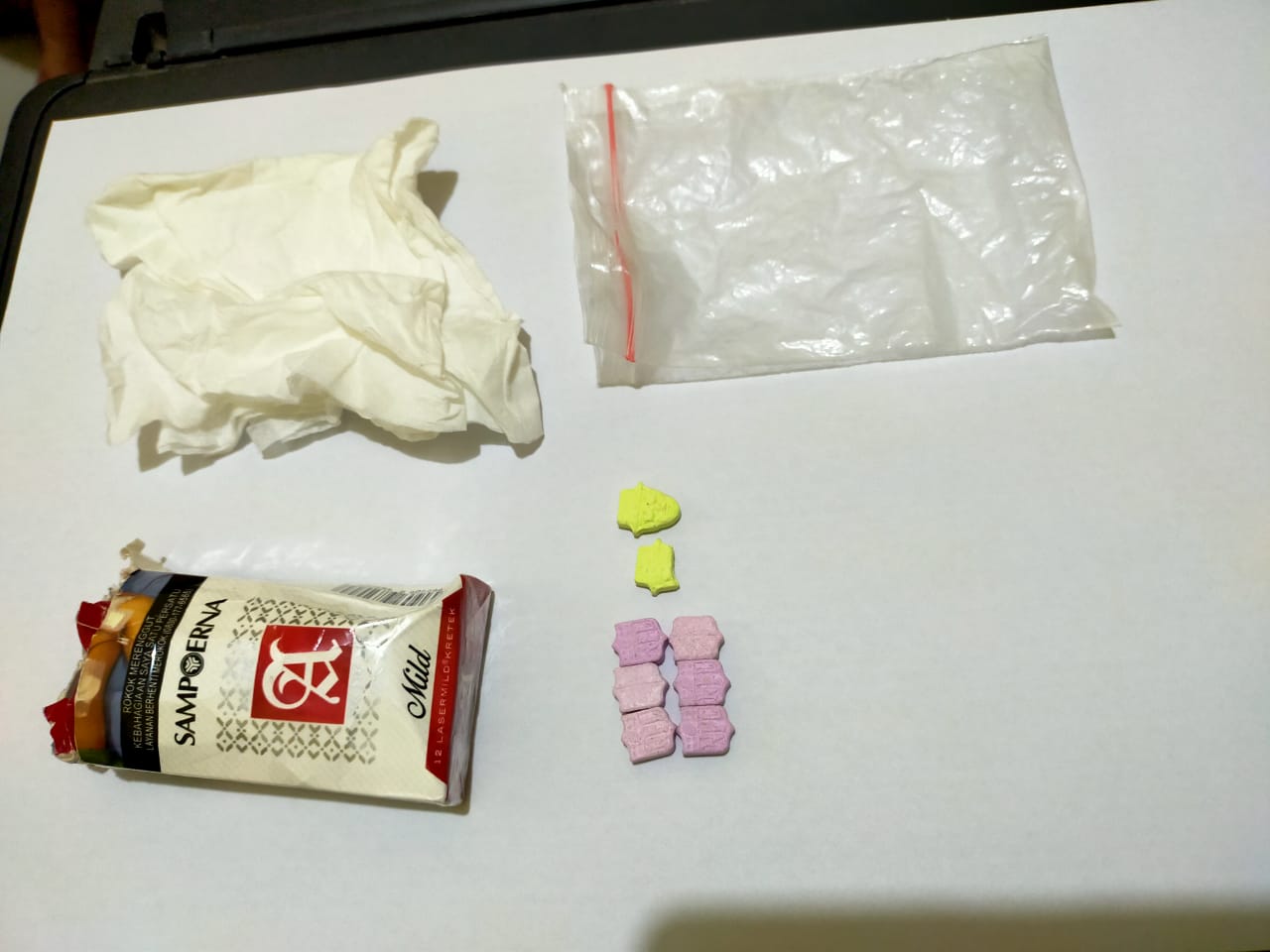 Meski begitu lanjut Kapolsek, adapun barang bukti yang diamankan adalah 8 butir diduga Pil ekstasi dengan berat kotor 4,38 gram, satu kotak rokok Sampoerna Kecil, sehelai tisu dan sebuah plastik bening berukuran sedang.