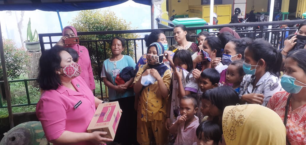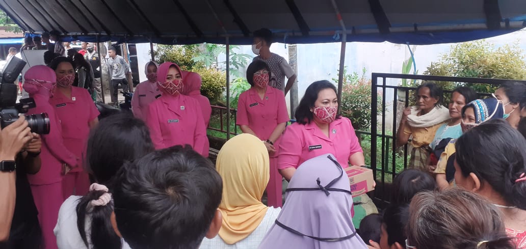 Ketua Bhayangkari Sumut Ny Risma Martuani Sormin saat diwawancarai oleh awak media ini usai menyerahkan bantuan tersebut, Minggu (6/12/2020), mengatakan,