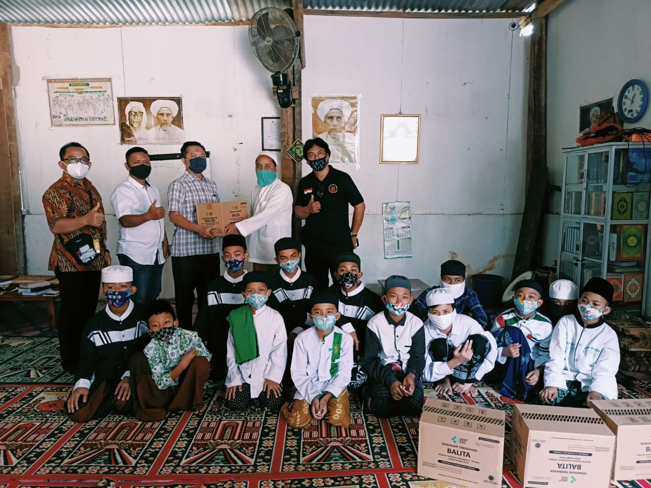 Berikutnya pengurus menuju pada Lembaga Kesejahreraan Sosial Anak (LKSA) Darul Quro' dengan memberikan bantuan yang sama seperti pada ponpes dan panti asuhan sebelumnya berupa paket sebako dan masker kepada sejumlah 40 anak asuh Kyai Ahmad Gozali.
