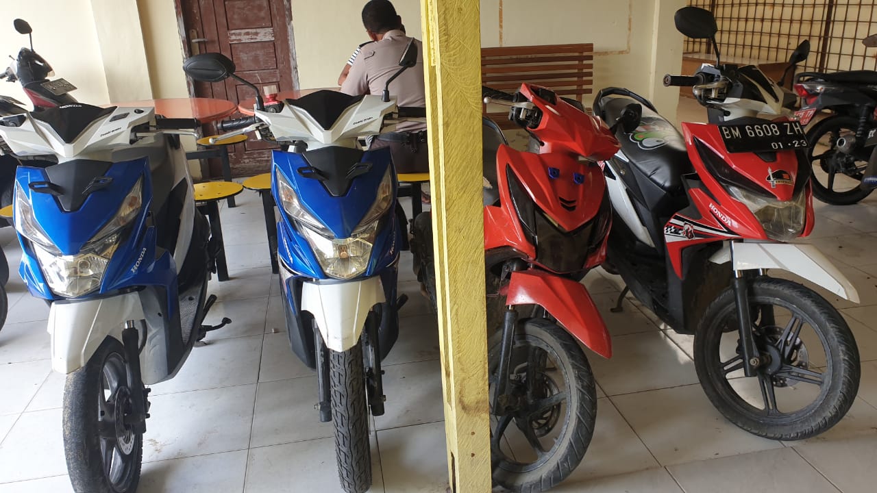 Tersangka inisial A alias AAS dan CI alias Candra mengakui melakukan pencurian sepeda motor 14 Tkp di Kota Pekanbaru, Kampar dan Pelalawan dan dapat disita barang bukti berupa : 1 (satu) Unit sepeda motor merk Honda Beat Warna Biru Putih No. Pol terpasang BM 2197 YY, 1 (satu) buah kunci kontak merk honda warna hitam, 1 (satu) Lembar STNK sepeda motor merk Honda Beat warna biru putih, No. Pol BM 2822 AAB an. Indra Tirtana, 1 (satu) unit sepeda motor merk Honda Beat warna biru putih, 1(satu) unit sepeda motor merk Honda Beat warna merah, 1(satu) unit sepeda motor merk Honda Beat warna merah putih dengan Plat Nomor Terpasang BM 6608 ZH," tambah Kapolsek.