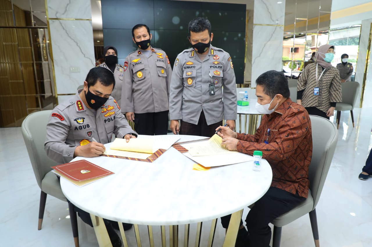Kegiatan penandatanganan PKS yang mengambil tempat di Ruang Kerja Kabaharkam Polri, Kompleks Mabes Polri, Jakarta
