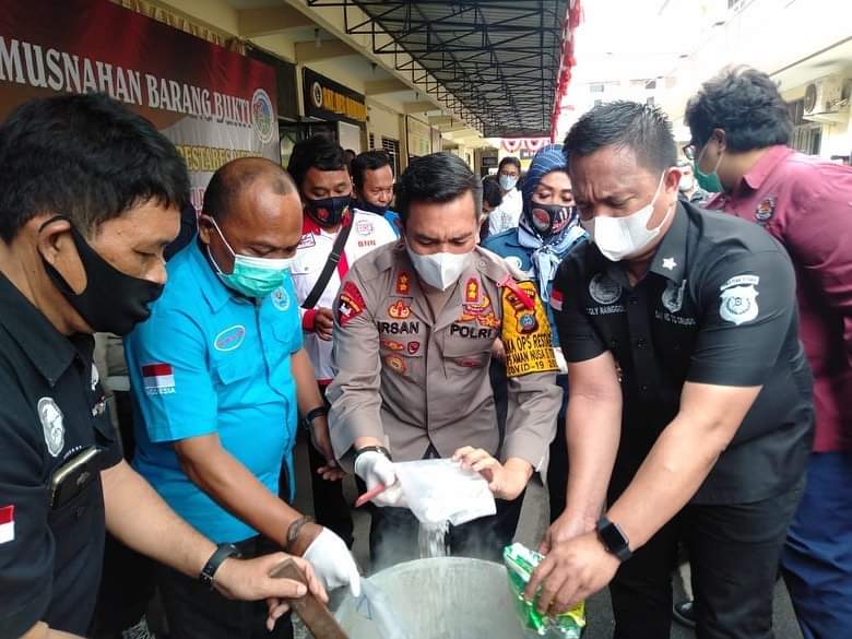 Pemusnahan barang bukti asal China dan Malaysia jaringan Aceh - Palembang - Medan itu dilakukan di depan halaman gedung Satres Narkoba Polrestabes Medan.