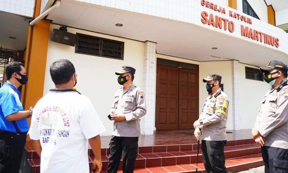 Kabid Humas Polda Jateng, Kombes Pol Iskandar Fitriana Sutisna meninjau Gereja Santo Martinus kec. Weleri untuk selalu menerapkan Prokes dalam beribadah (Foto: Dok. Bidhumas Polda Jateng).