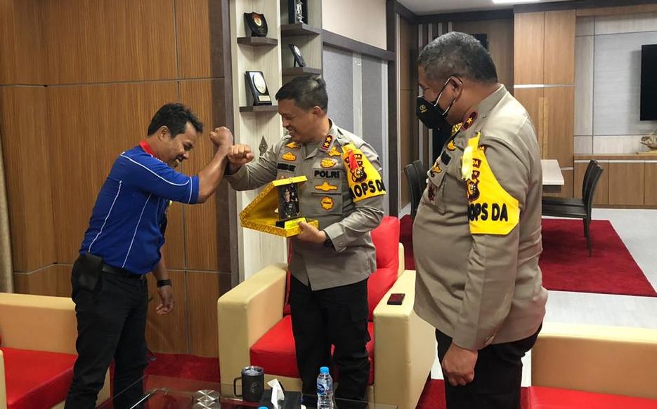PEKANBARU AKTUALDETIK.COM - Pimpinan Redaksi media Aktualdetik.com, sekaligus kepala perwakilan Riau koran Mingguan Aktual, Feri Siabarani, STP, hari ini resmi memberikan cinderamata kepada Kapolda Riau, Irjen Pol Agung Setya Imam Efendi, S.H.,S.I.K, M.Si, di Markas Polda Riau, 30/12/2020.