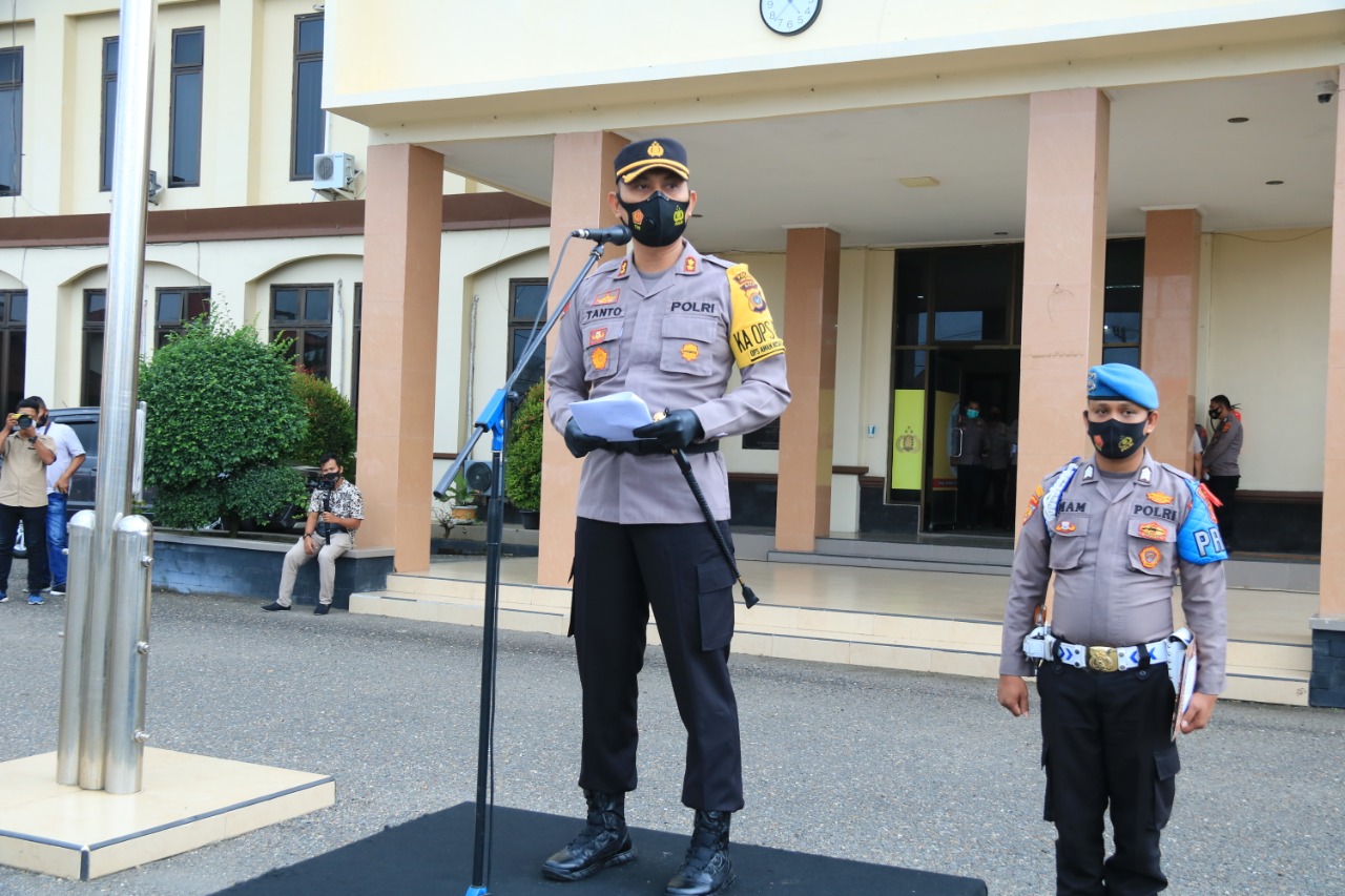Kapolres mengingatkan, mari selalu meningkatkan keimanan dan ketakwaan kepada Tuhan Yang Maha Esa Ikhlas penuh kesadaran dan menjadikan pelaksanaan tugas sebagai ibadah siapkan fisik dan mental yang dilandasi oleh komitmen moral dan disiplin kerja yang tinggi dalam memberikan pelayanan yang terbaik bagi masyarakat.