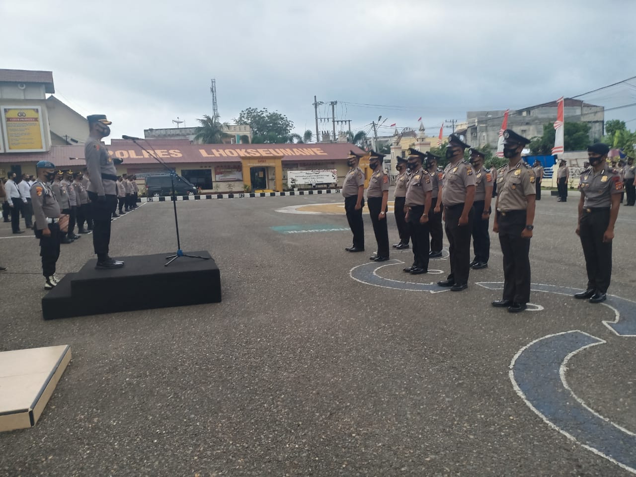 Kapolres Lhokseumawe AKBP Eko Hartanto, S.I.K, MH dalam amanatnya menyampaikan ucapan selamat dan terima kasih telah melaksanakan dinas secara baik dan benar sehingga terciptanya Polri yang promoter dalam melaksanakan tugas.