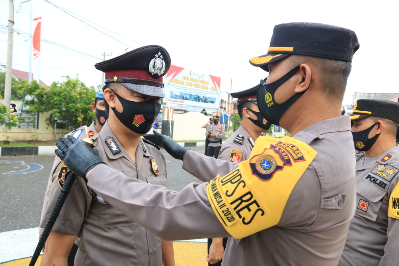 LHOKSEUMAWE AKTUALDETIK.COM - Kapolres Lhokseumawe AKBP Eko Hartanto, S.I.K, MH pimpin langsung upacara kenaikan pangkat setingkat lebih tinggi 53 personil Polres Lhokseumawe dan 1 personil Brimob Yon B Pelopor Aceh TMT 1 Januari 2021 yang berlangsung di halaman Mapolres Lhokseumawe, Jum'at (01/01/2021) sore.