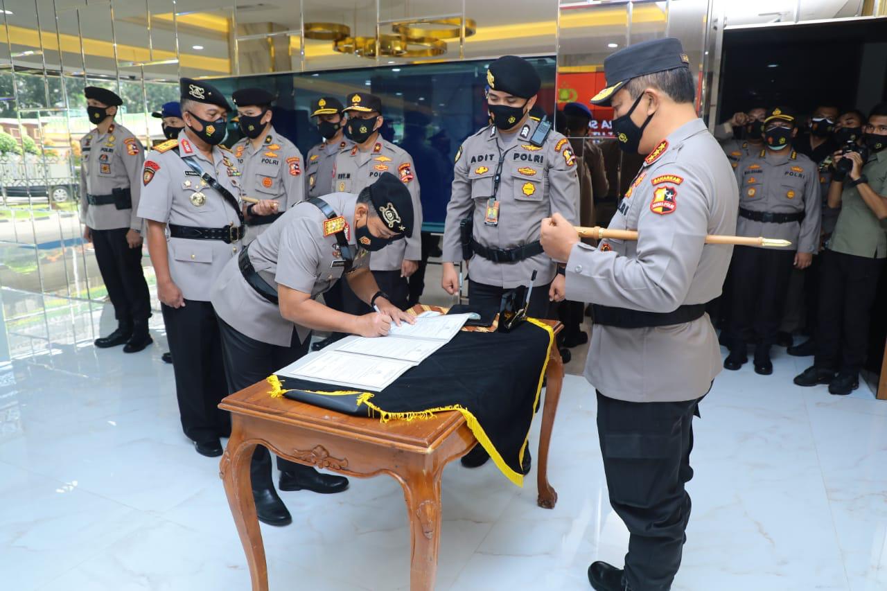 Mutasi dan rotasi jabatan ini sendiri sebenarnya sudah dilakukan sejak 1,5 bulan yang lalu, namun sesuai arahan Kapolri Jenderal Pol Idham Azis, Upacara Sertijab baru boleh dilakukan setelah pengamanan Pilkada Serentak 2020 dan Operasi Lilin dalam rangka pengamanan Natal dan Tahun Baru 2021 berakhir.