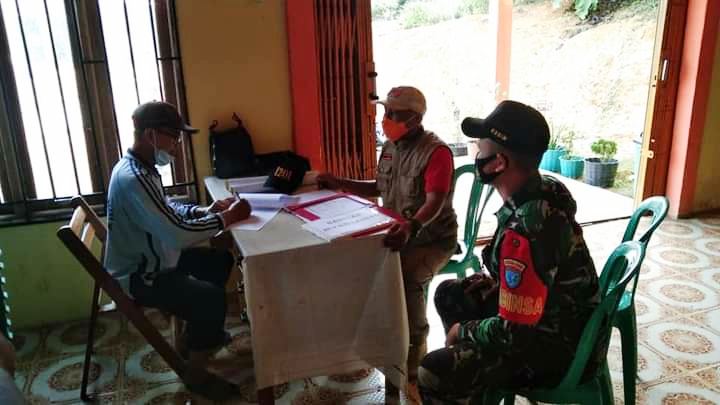 Babinsa Meranti, Serda Moses Samodara menyampaikan pendampingan yang dilakukan untuk membantu Pemerintah Desa dalam menyalurkan bantuan agar tepat sasaran pada masyarakat penerima.