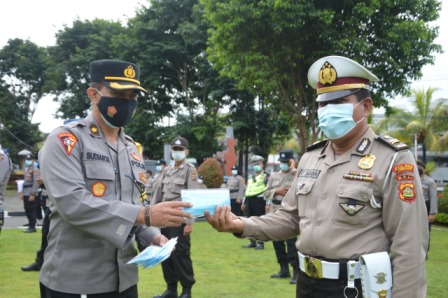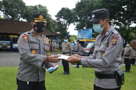 Pada kesempatan Apel diikuti para Kasatgas Operasi dan personil terseprint dalam Operasi tersebut Kabag Ops Polres Tabanan juga memberikan APD berupa masker Kepada Personil sebelum turun ke lapangan melaksanakan tugas pengamanan.