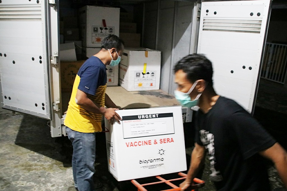 SEMARANG AKTUALDETIK.COM - Ribuan vial vaksin Covid-19 tiba di Kabupaten Blora, Jawa Tengah, Sabtu (23/1/2021) malam. Dengan pengawalan ketat petugas, armada angkut vaksin tiba di Unit Palayanan Teknis Daerah (UPTD) Gudang Farmasi Dinas Kesehatan (Dinkes) Blora sekira pukul 22.15 WIB.