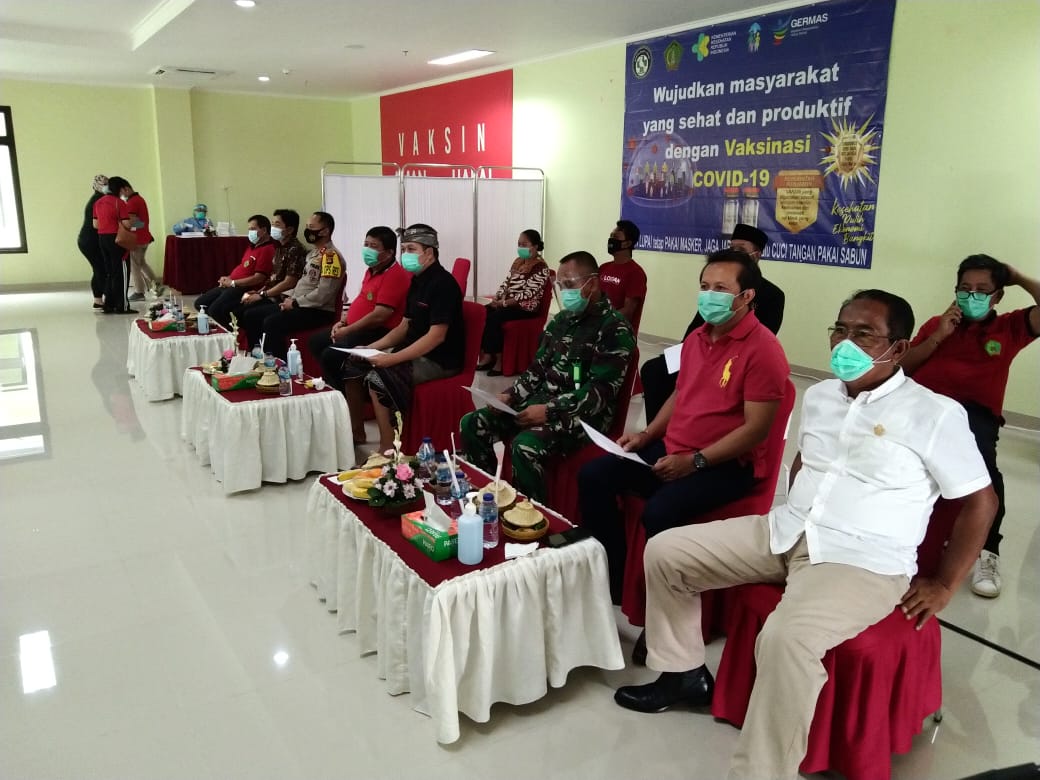 Kegiatan vaksinansi tahap pertama tersebut dihadiri oleh unsur Forkopimda Jembrana diantaranya Bupati Jembrana I Putu Artha, S.E., M.M., Wakil Bupati Jembrana I Made Kembang Hartawan S.E. M.M., Dandim 1617/Jembrana Letkol Inf Hasrifuddin Haruna, S. Sos, Kapolres Jembrana AKBP I Ketut Gede Adi Wibawa, S.I.K.