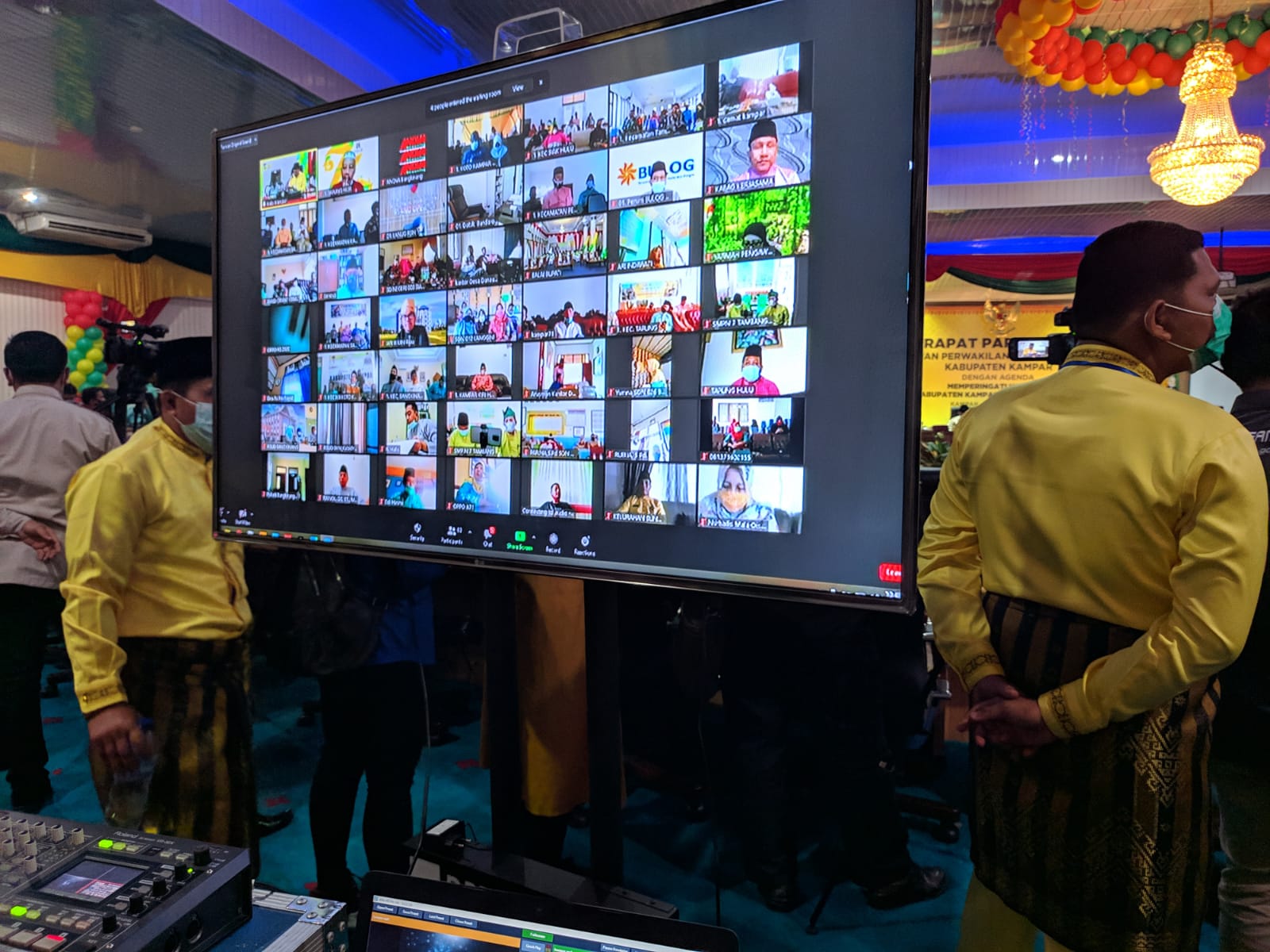 Para pejabat eselon II, III dan IV di lingkungan Pemerintah Kabupaten Kampar mengikuti rapat paripurna dengan virtual di Balai Pendopo Bupati Kampar. Sedangkan para Camat dan Kepala Desa se kabupaten Kampar juga mengikuti rapat paripurna secara virtual.
