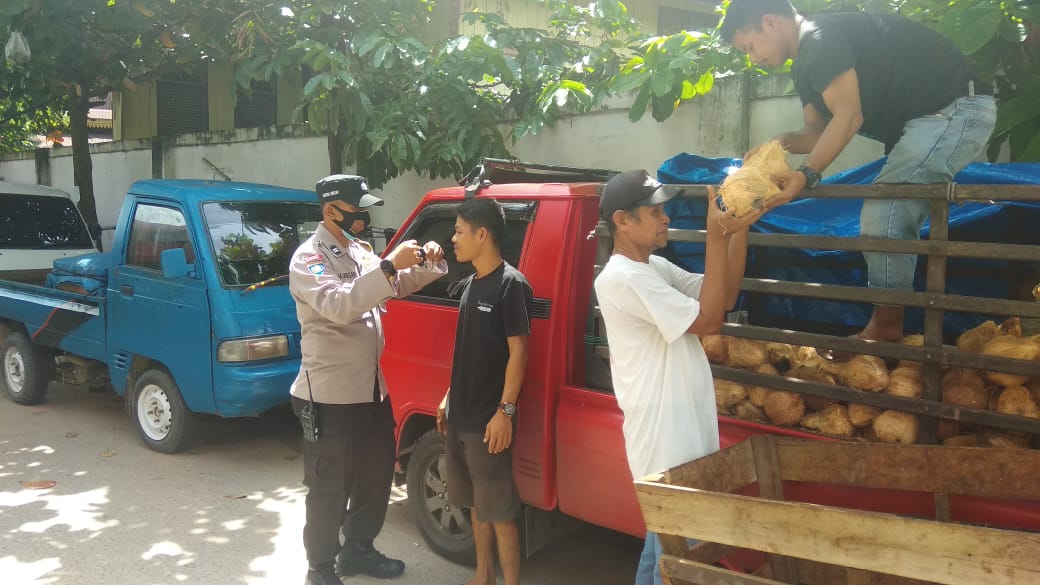 Polsek Bukit Raya Bagikan Masker Gratis dan Himbau Pedagang dan Pengunjung Terapkan Protkes