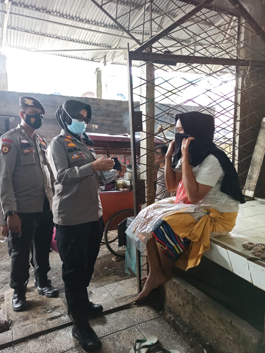 Pantauan, tampak Waka Poslek Bukit Raya AKP Nursyafniati bersama para personil, menyampaikan himbauan kepada para pedagang dan pengunjung pasar, dengan berjalan kaki, agar tetap memakai masker dan memperhatikan protokol kesehatan saat melakukan aktivitas diluar rumah khususnya di kawasan Pasar Pagi Dupa.