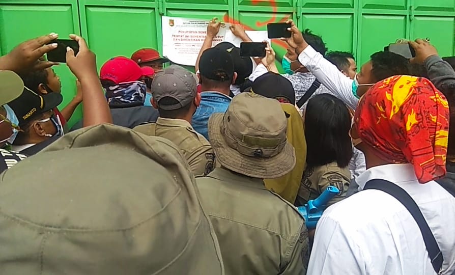 Dan sempat terjadi keributan, hingga aksi saling dorong antara warga dan petugas Satpol-PP di lokasi penyegelan, yang tentu saja telah terjadi kerumunan banyak orang saat kejadian.