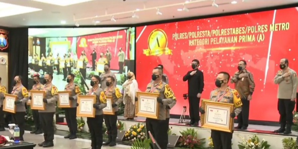 Penerimaan penghargaan tersebut, diserahkan Menpan RB melalui Prof Dr Diah Natalisa MBA selaku Deputi Bidang Pelayanan Publik Kementerian Pendayagunaan Aparatur Negara dan Reformasi Birokrasi (Kemenpan-RB) kepada 12 Polres, Polresta, Polrestabes dan Polresta yang disaksikan secara langsung oleh Wakil Presiden Republik Indonesia KH Ma'ruf Amin, Kapolri Jenderal Pol Drs. Listyo Sigit Prabowo, M.SI, dan Tjahjo Kumulo Menteri Pendayagunaan Aparatur Negara dan Reformasi Birokrasi.