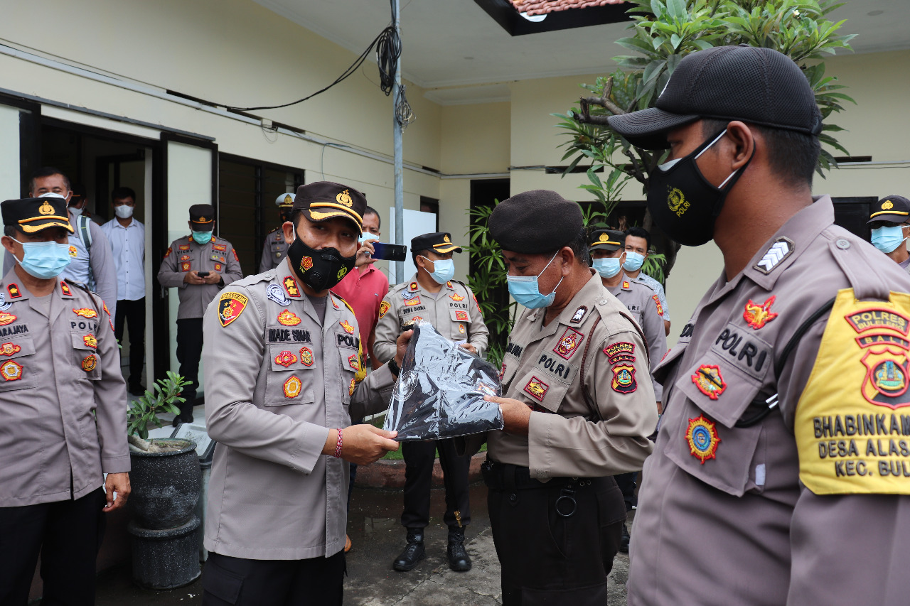 Kapolres Buleleng memberikan baju kaos WBK kepada seluruh personel jajaran
