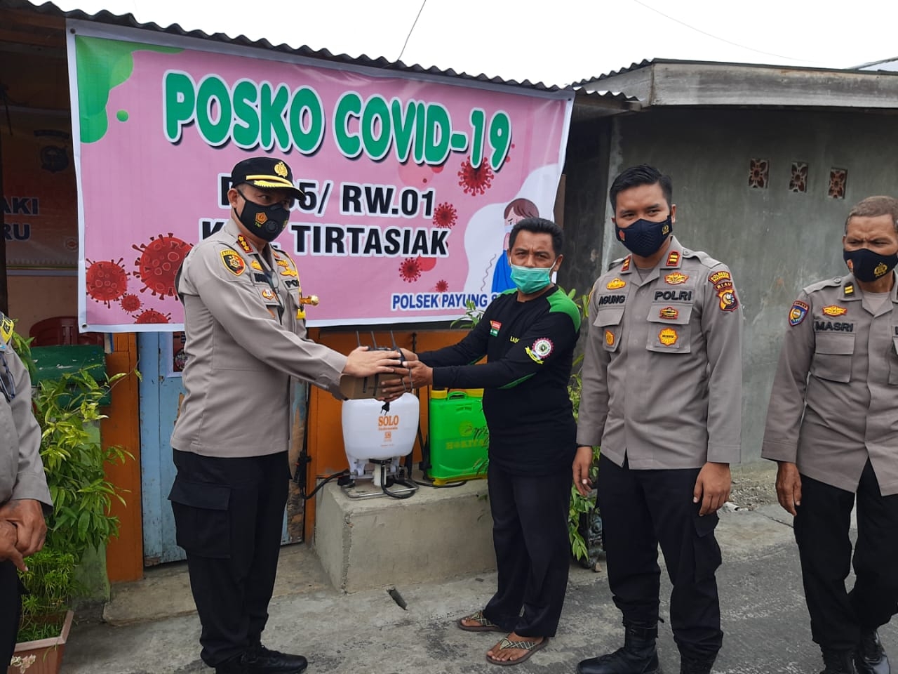 Setibanya Posko Covid-19, Kapolresta Pekanbaru Kombes Pol H Nandang Mu'min Wijaya., S.I.K.,M.H, memberikan arahan kepada Bhabinkamtibmas Tirta Siak yang dihadiri Aiptu Subagio dan Ketua Posko Covid-19 PPKM RT 05 RW 01 yang dipimpin Jonnaini.