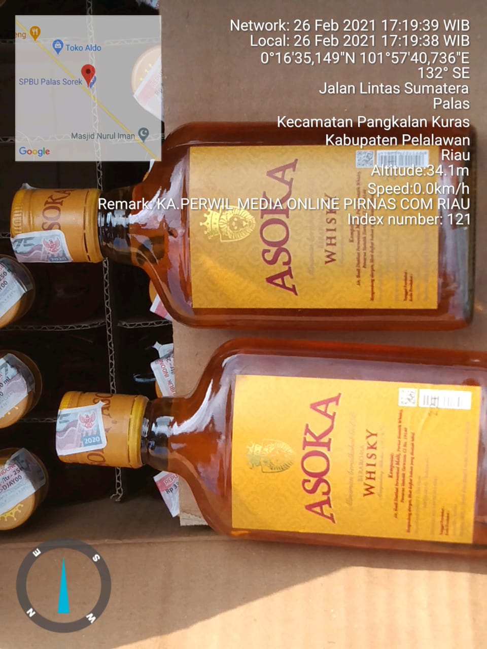 Dalam kegiatan itu RM juga menyebutkan bahwa aparat kepolisian dari Polres Pelalawan telah melakukan survey untuk mengecek keabsahan minuman beralkohol tersebut, dimana kabarnya, barang bukti sudah dibawa ke Mapolres Pelalawan yakni satu dush Anggur merah dan satu dush wiskey merek Asoka.