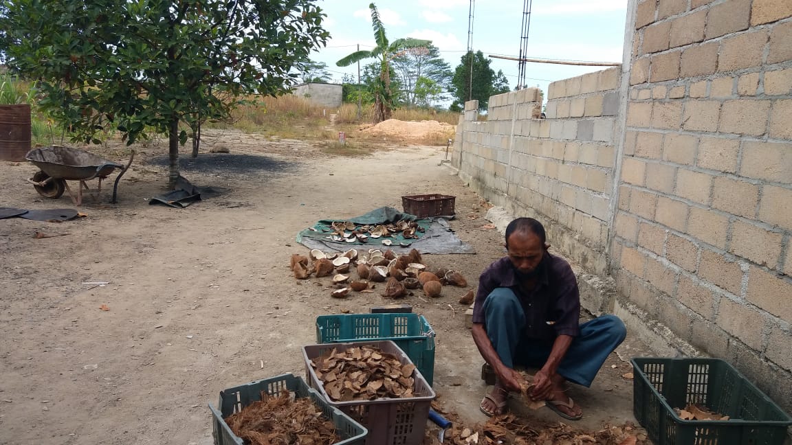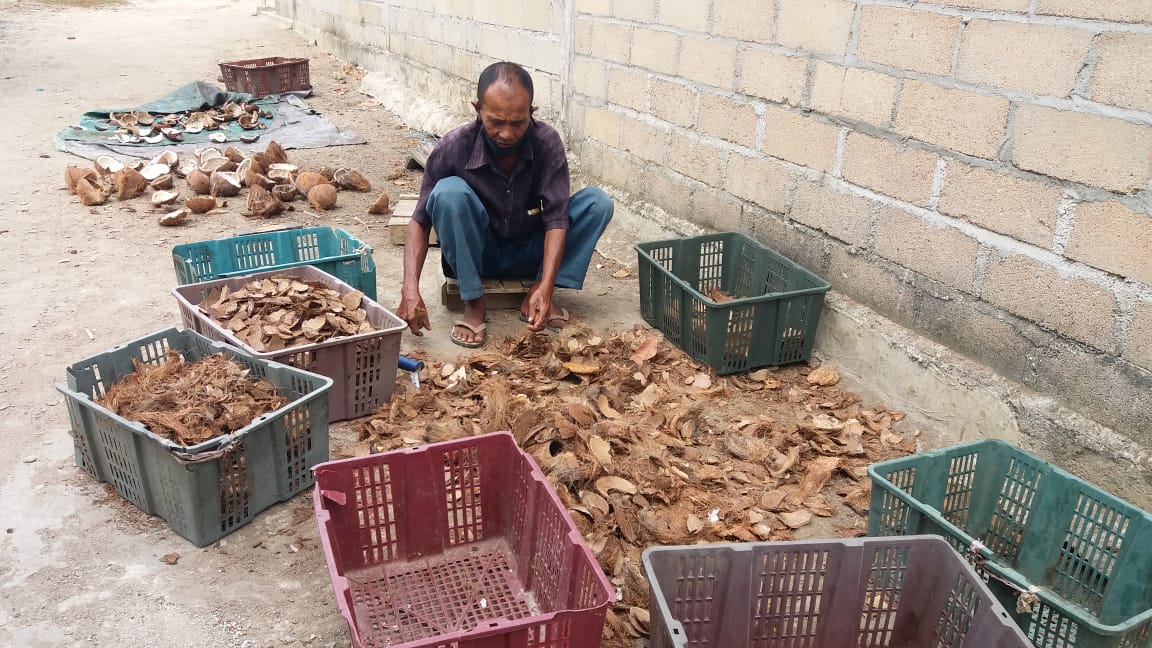 "Saya jaga gudang dan juga jadi supir saya lihat tempurung kelapanya dibuang-buang, terpikirlah dibenak saya untuk menjadikannya arang," bebernya.