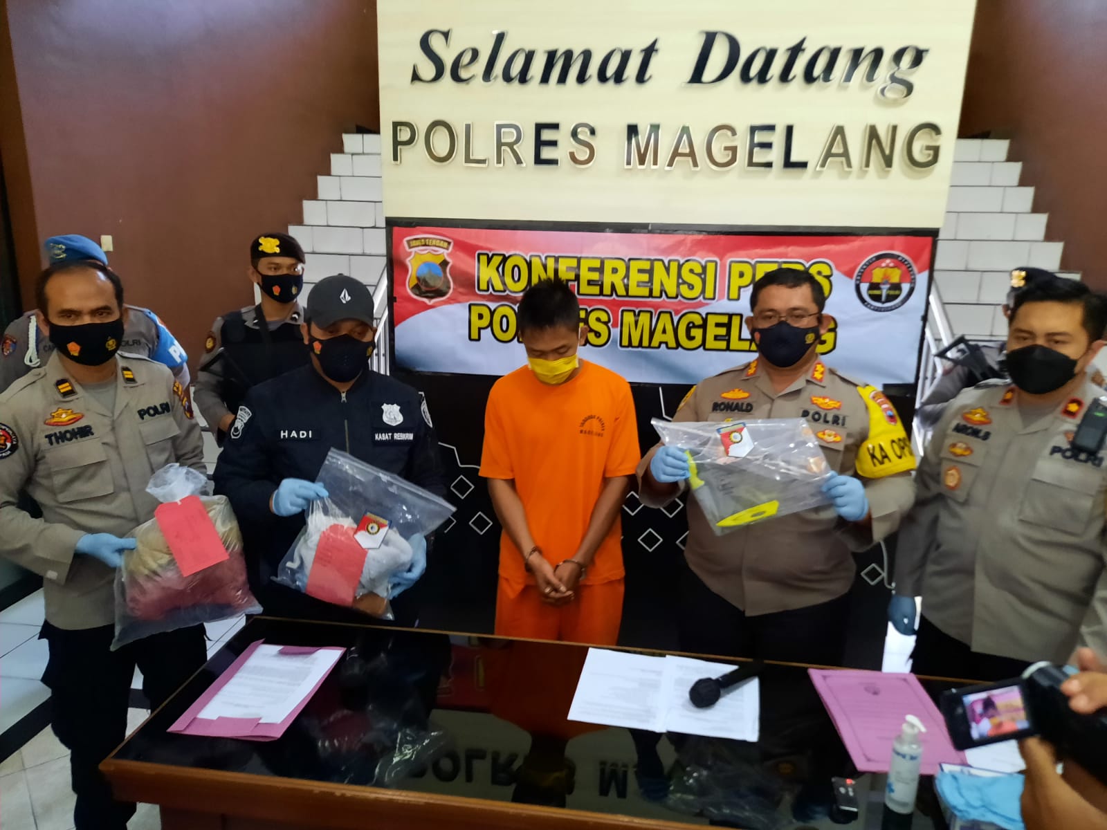 Kapolres Magelang AKBP Ronald A.Purba saat memberikan keterangan kepada awak media di Kantor Polres Magelang.